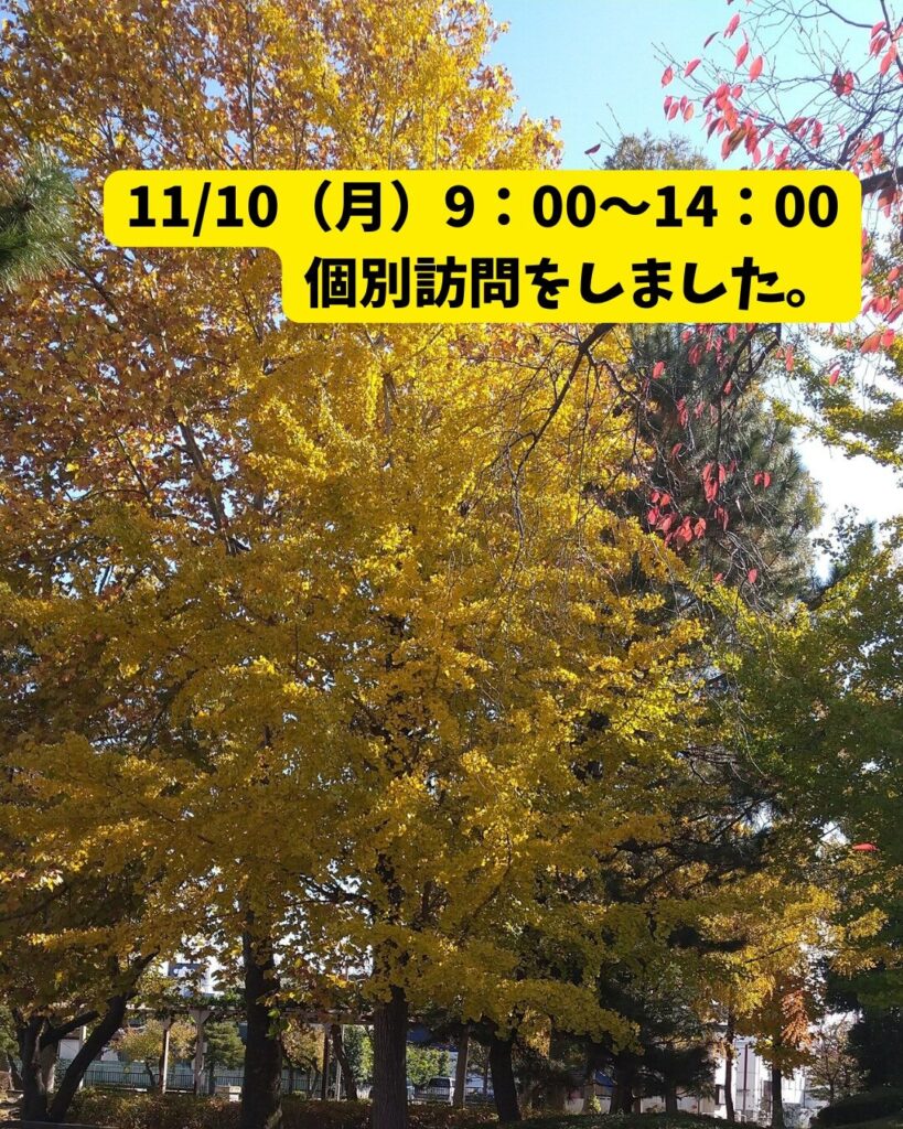 11/10(月)9:00〜14:00 個別訪問をしました。