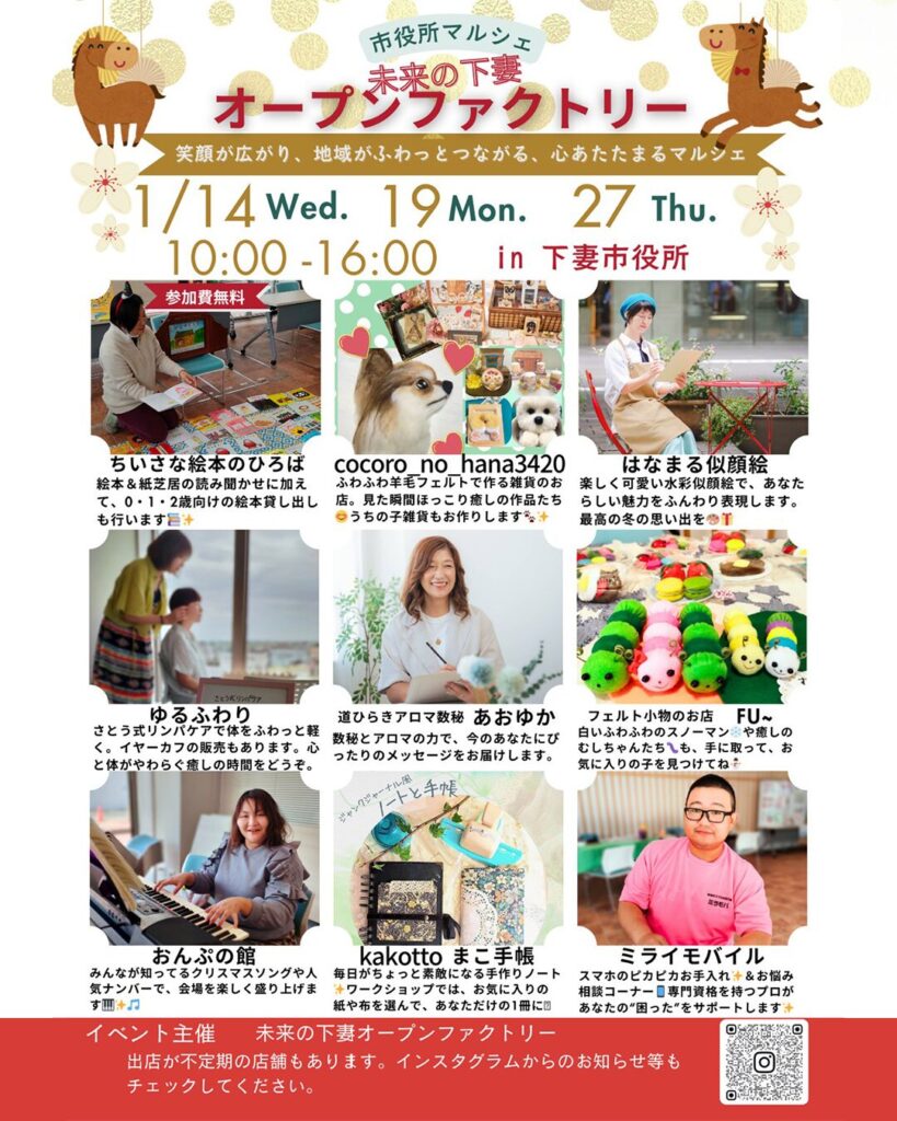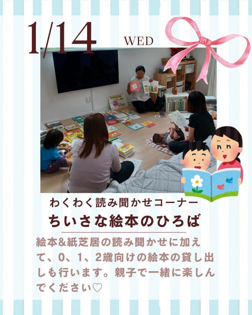 2026.01.14 2026.01.14 個人的な内容 第2回 ちいさな絵本のひろばのお誘い ayumu-shimotsuma 第2回 ちいさな絵本のひろばのお誘い 月1回 未来の下妻オープンファクトリーのイベント内で 下妻市役所 1階にて 絵本紙芝居読み聞かせと0.1.2歳向けの絵本の貸し出しを行っています。 12月からスタートして、 今回は2回目です。 10時から15時ぐらいまで開催しています。 参加費無料、予約なしの会です。 お待ちしています。 ABOUT ME 安田あゆみ下妻市議会議員FacebookInstagramLINE下妻市議会議員・市民団体代表・個人事業主 3人の現役子育てママ 1人ひとり、自分の人生を自由に描き、自分の意思で歩んでいくことを応援しています
